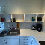 Dette feriehuset i Urda har et lite kjøkken med vannkoker, brødrister og kokeplate. Den nærmeste bussholdeplassen er Olderfjord nord, like i nærheten av Urda-overnattingen.